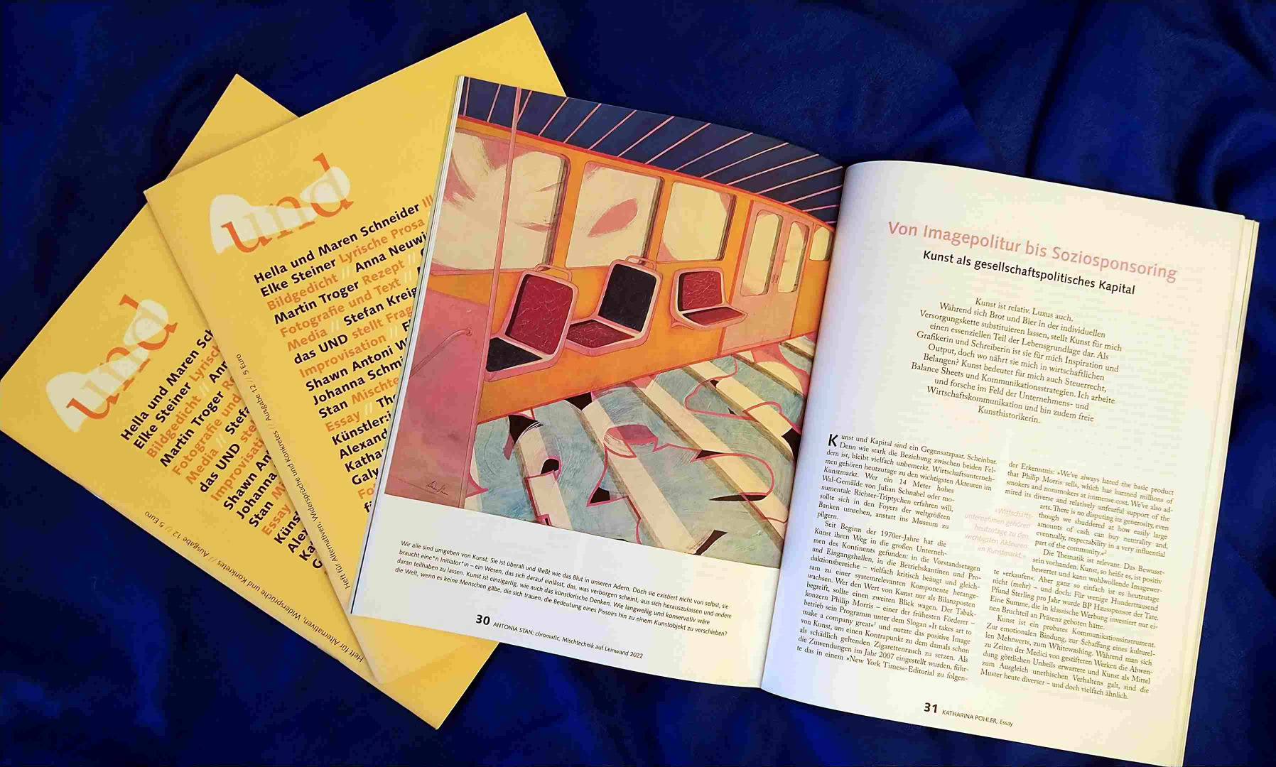 Ich hatte die Ehre eine der ausgewählten Künstler*innen für die 12. Ausgabe des UND-Hefts zu sein. Wenn ihr meinen Beitrag sowie die Beiträge der 75 anderen im Heft vertretenen Künstler*innen sehen wollt, könnt ihr euch eine der wundervollen Ausgaben unter dem untenstehenden Link bestellen!